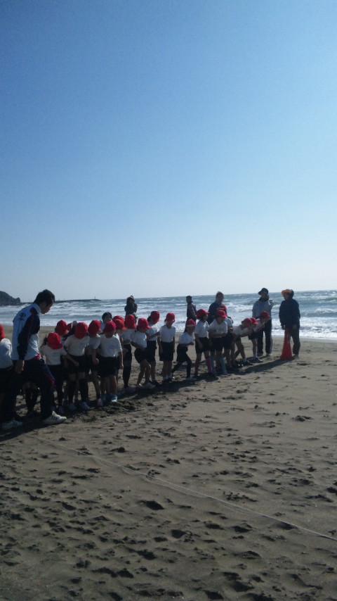 今日、御宿小学校の生徒達が強風の中、御宿海岸でマラソン大会に汗を流しがんばっていましたp(^^)q