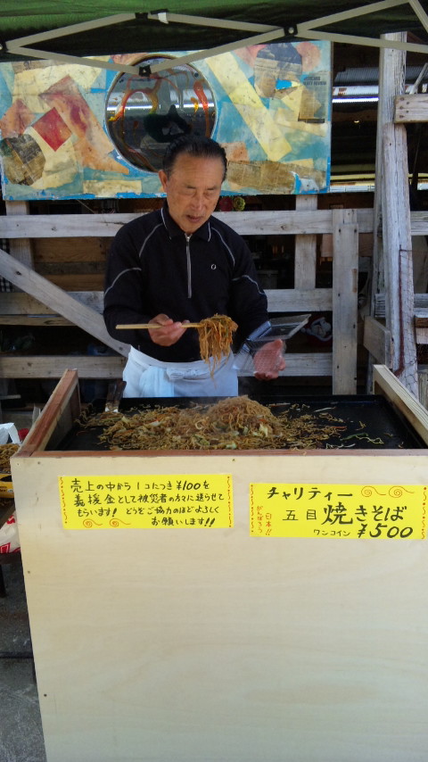 その合間のお昼時に浜よしのじじはチャリティー焼きそばを販売して微力ながら義援金に貢献されてもらいました!