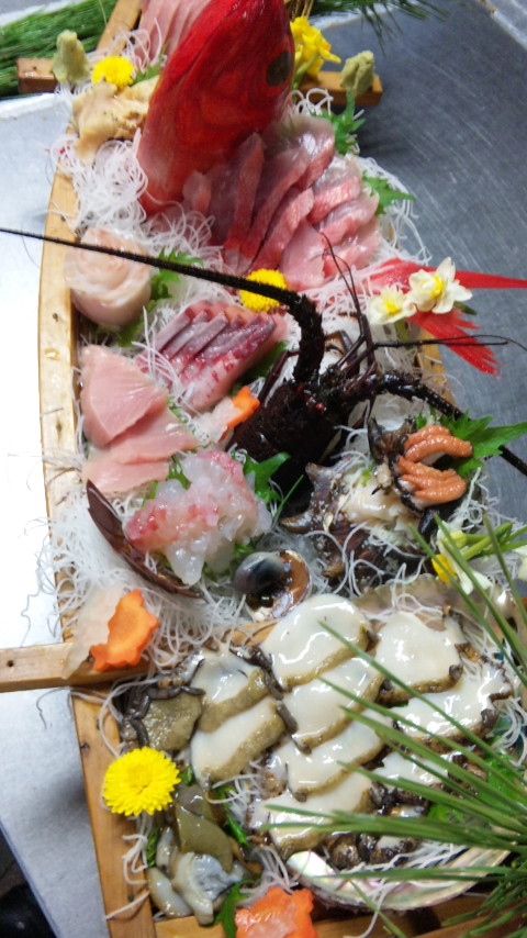 目の前にある御宿岩和田漁港で直接買い付ける、とれたての活きた魚介類を中心に刺身をお造りしています!