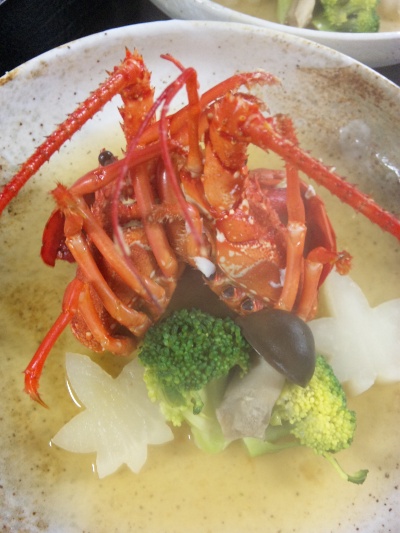 写真はプランの料理の一つ伊勢海老の具足煮です!ぷりぷりで美味しい(o^~^o)ですよ!
